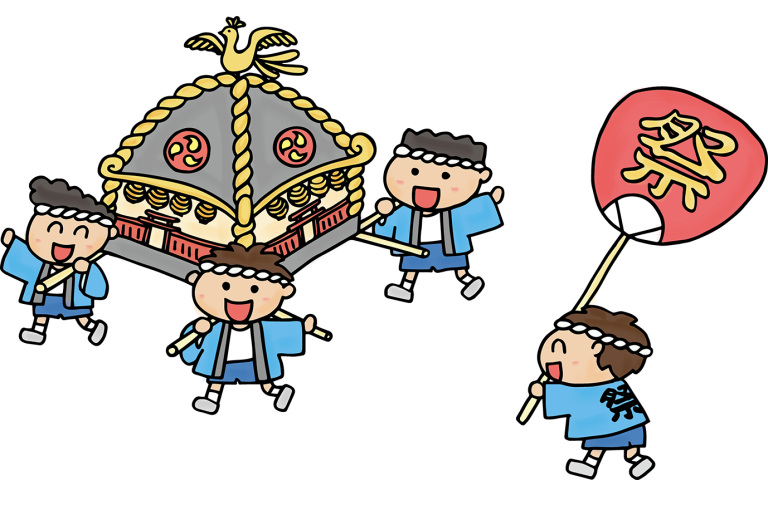 こどもたちは、にぎやかなおまつりの